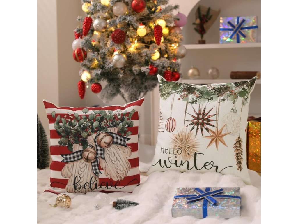 Vánoční povlak na polštář BOHO WINTER 45x45 cm, krémový