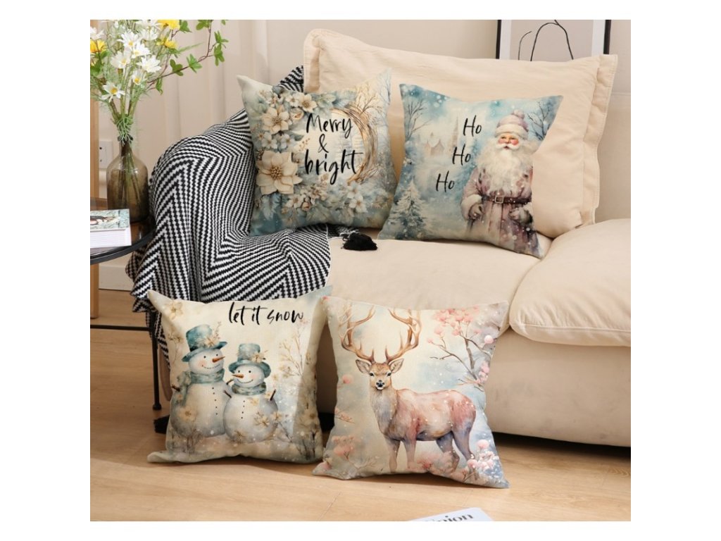 Vánoční povlak na polštář DEER IN WINTER 45x45 cm, béžový