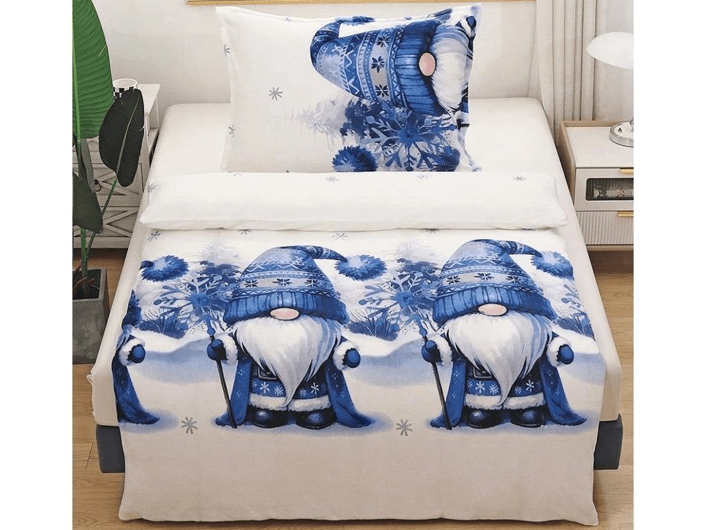 Mikroplyšové povlečení GNOMLI bílo-modré