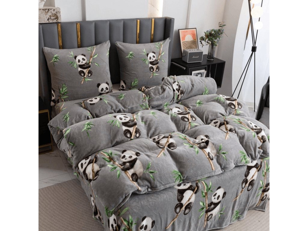 Mikroplyšové povlečení HAPPY PANDA šedé