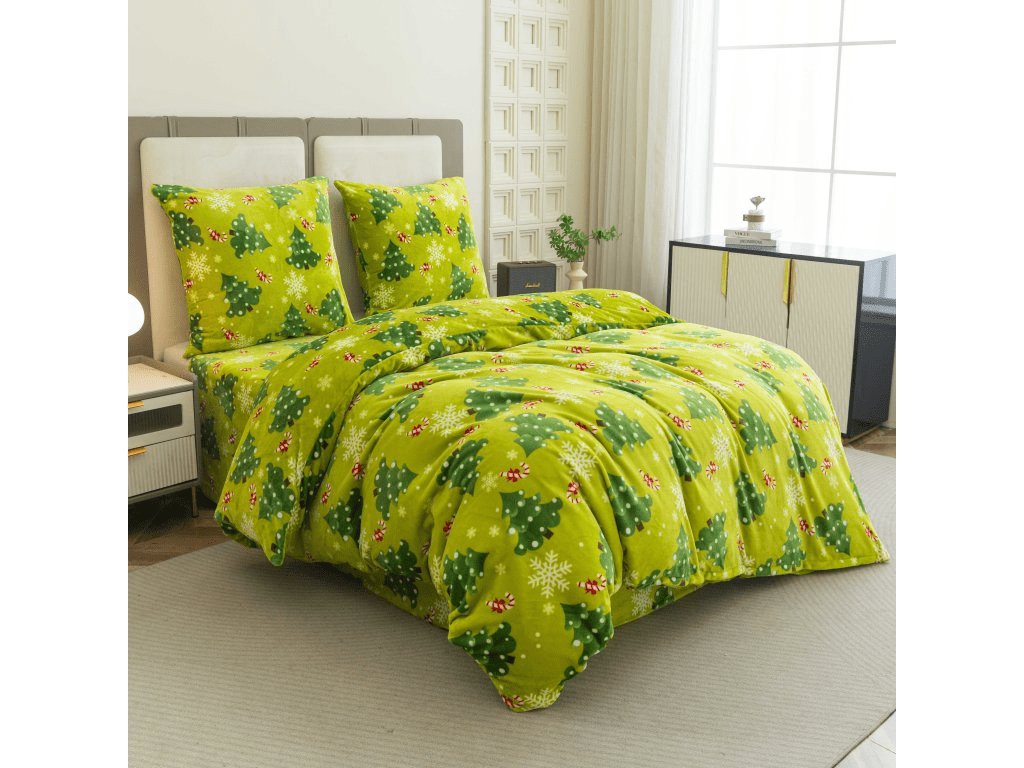 Mikroplyšové povlečení CHRISTMAS TREE zelené