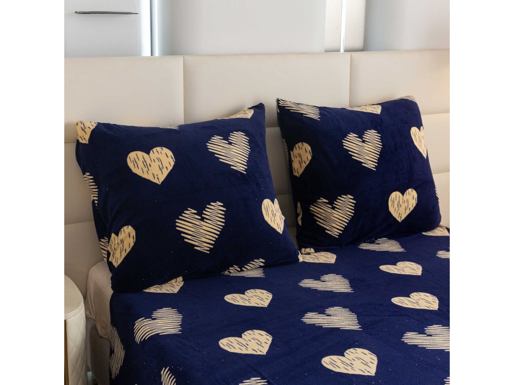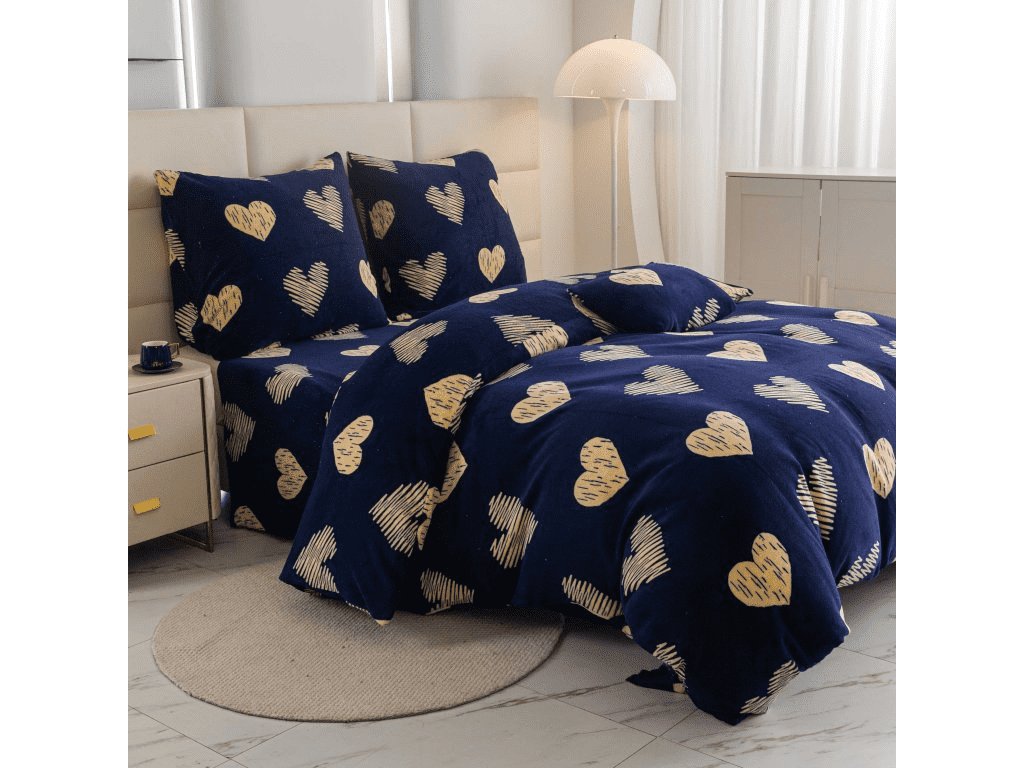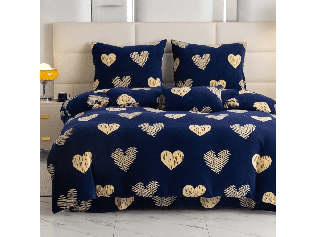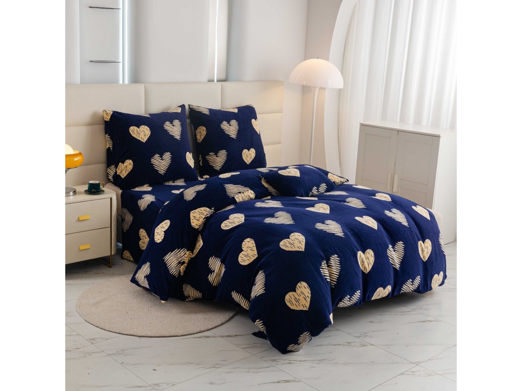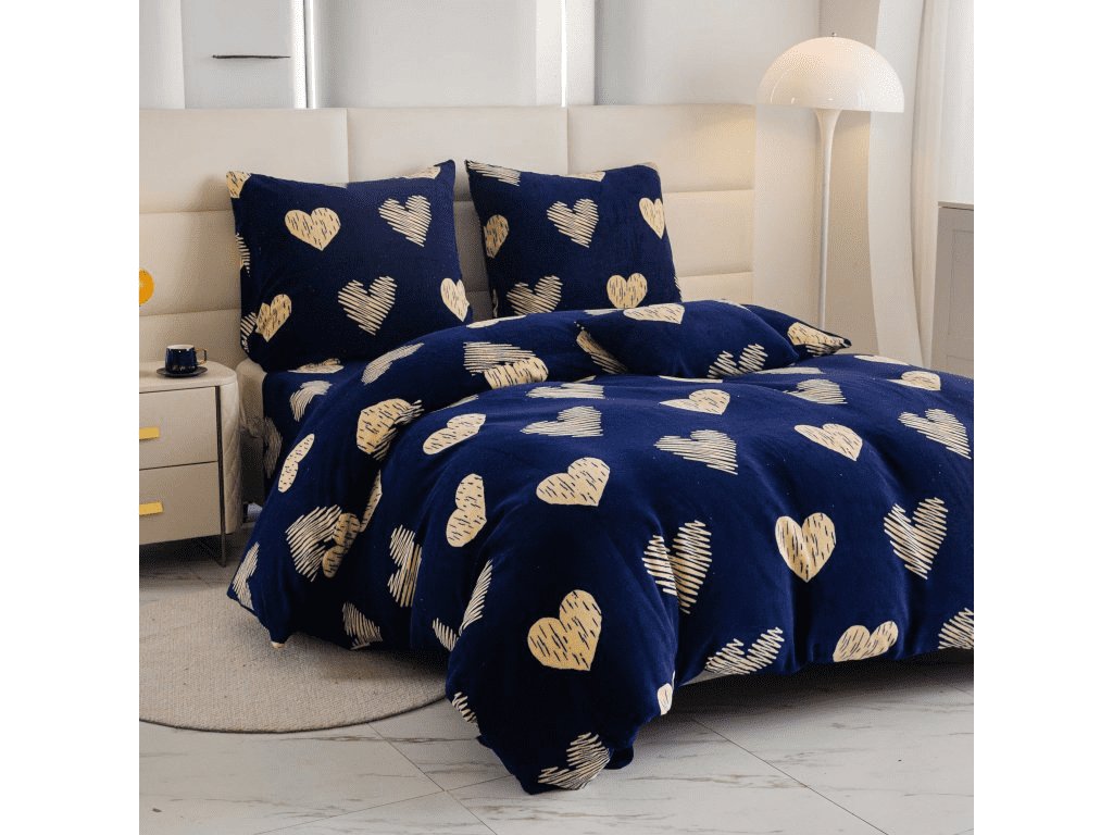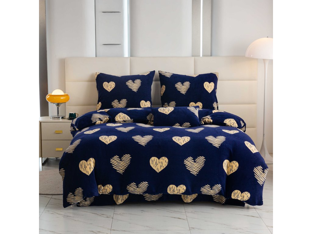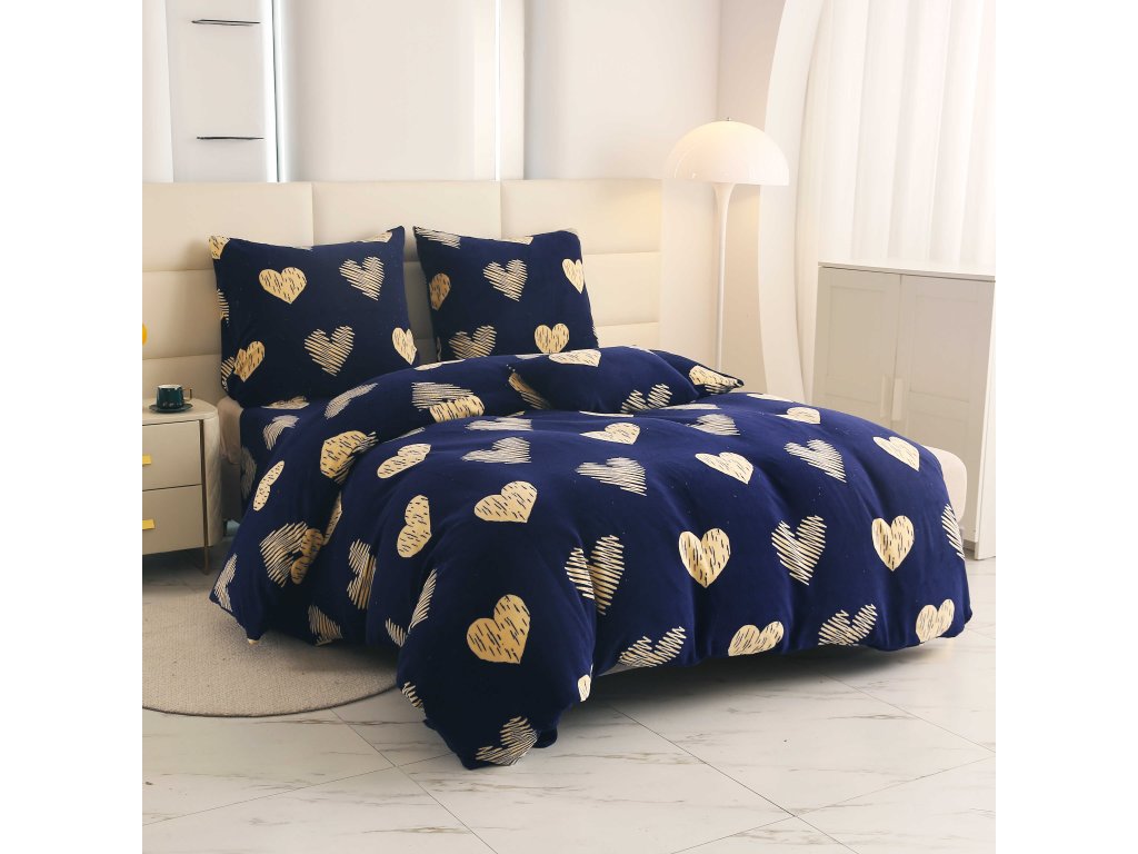 Mikroplyšové povlečení GOLDEN HEARTS tmavě modré