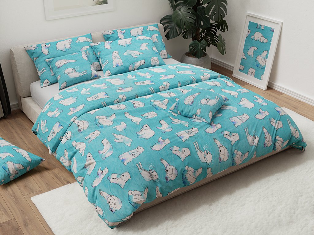 Mikroplyšové povlečení LEDNÍ MEDVĚDI modré