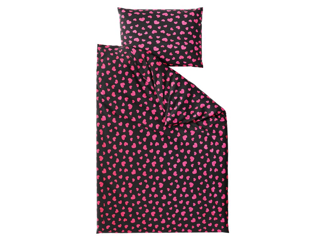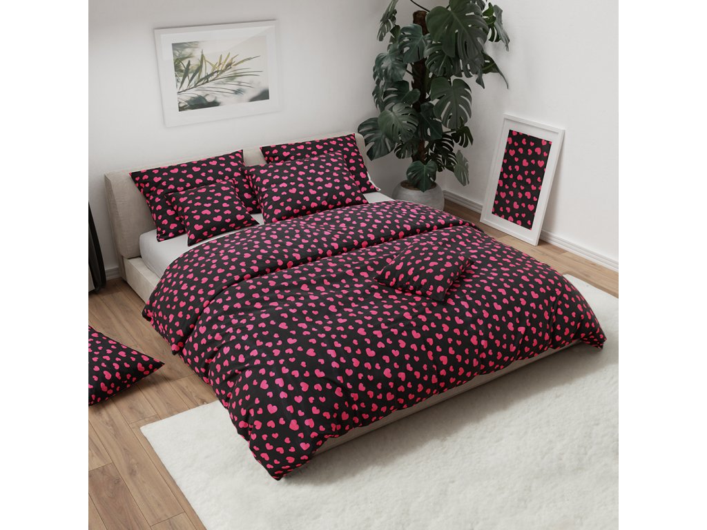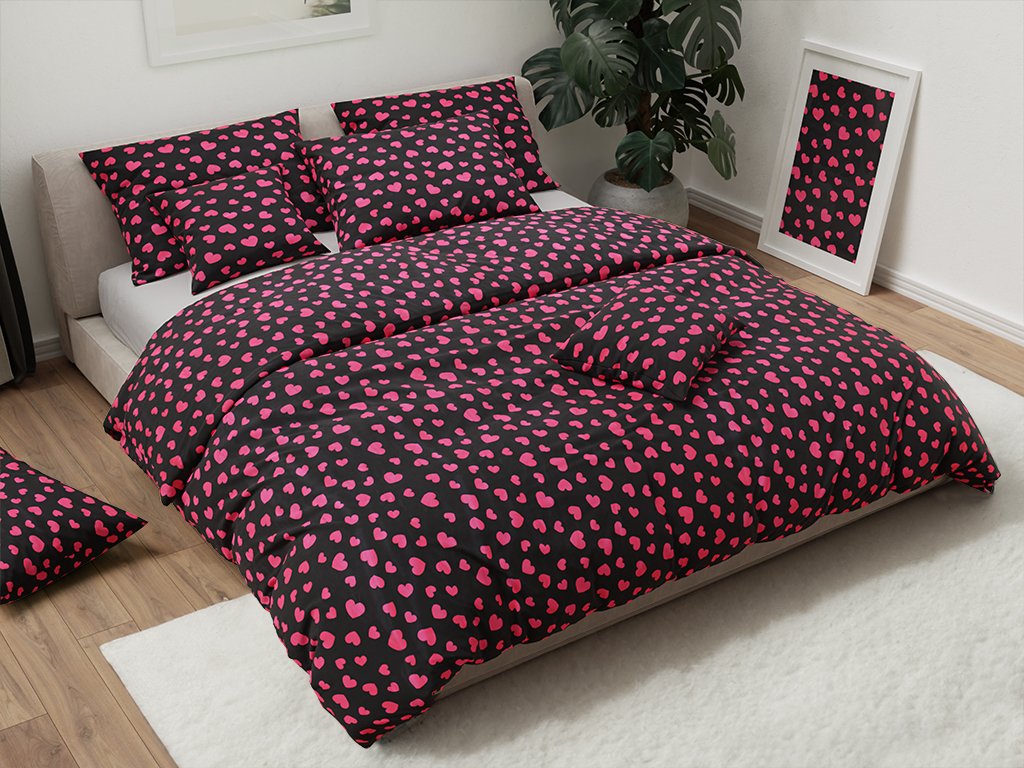 Mikroplyšové povlečení RŮŽOVÉ SRDCE černé
