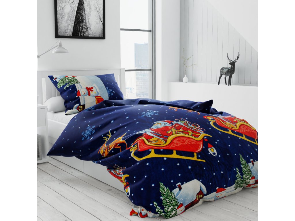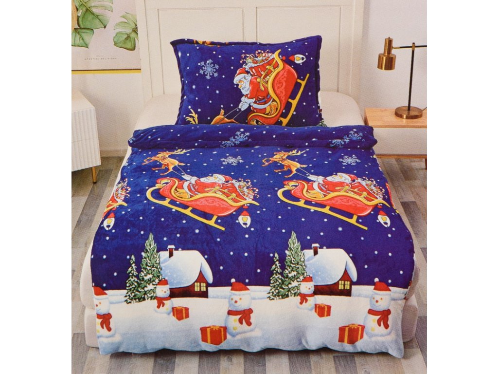 Mikroplyšové povlečení SANTA NA SANÍCH modré
