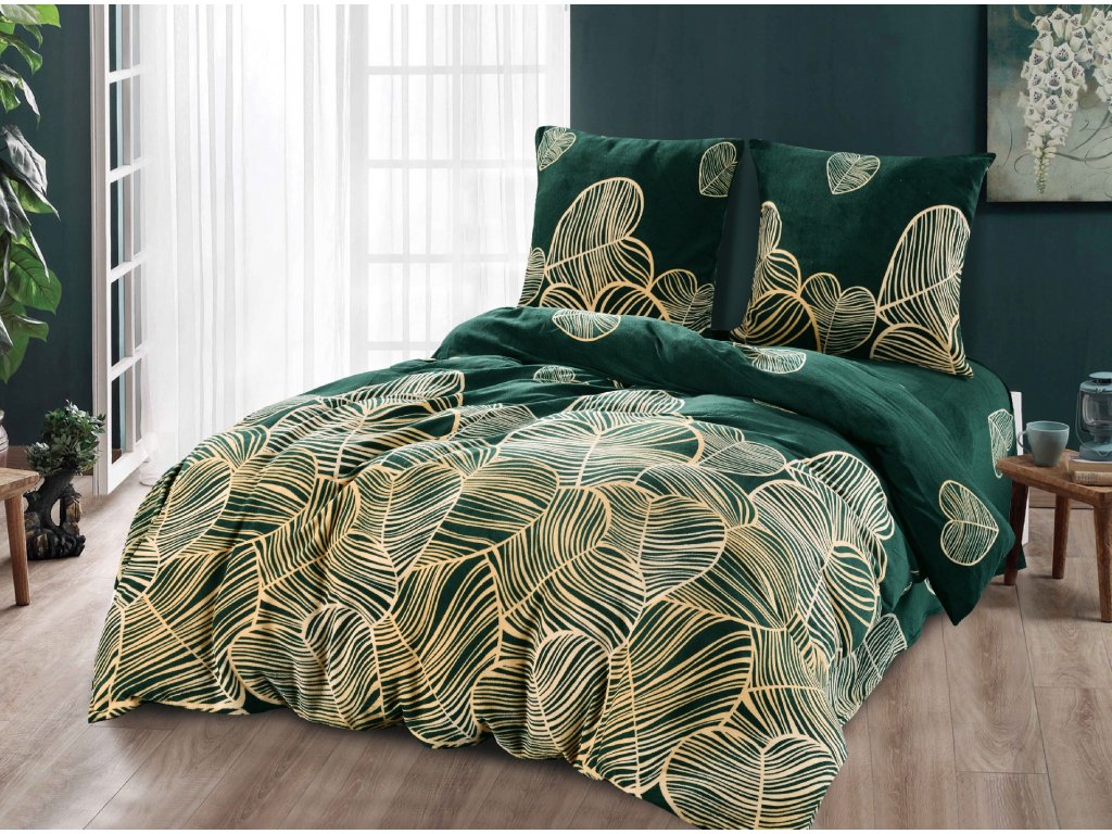 Mikroplyšové povlečení SRDCE zelené