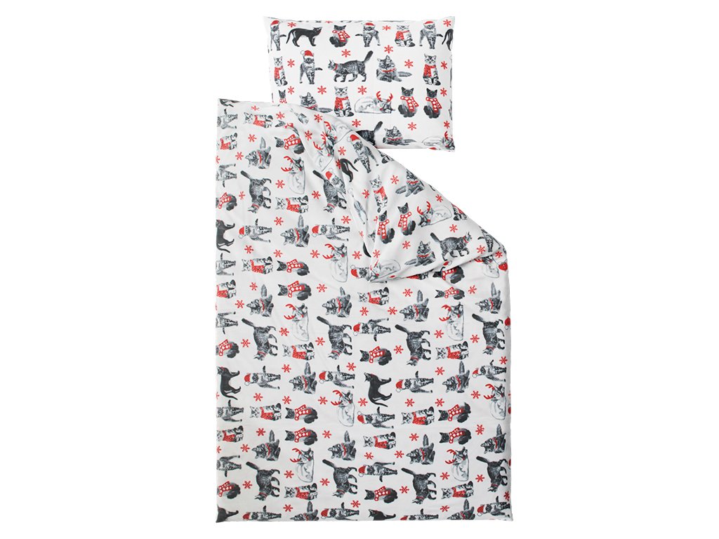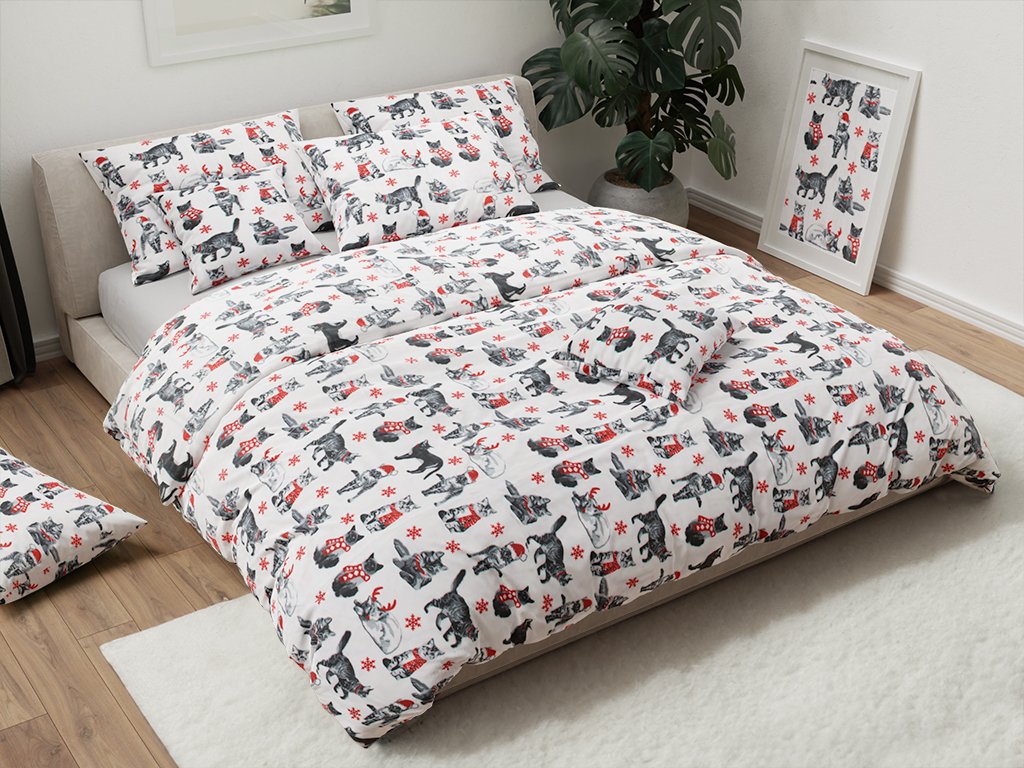 Mikroplyšové povlečení VÁNOČNÍ KOČKY bílé