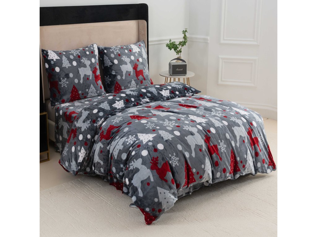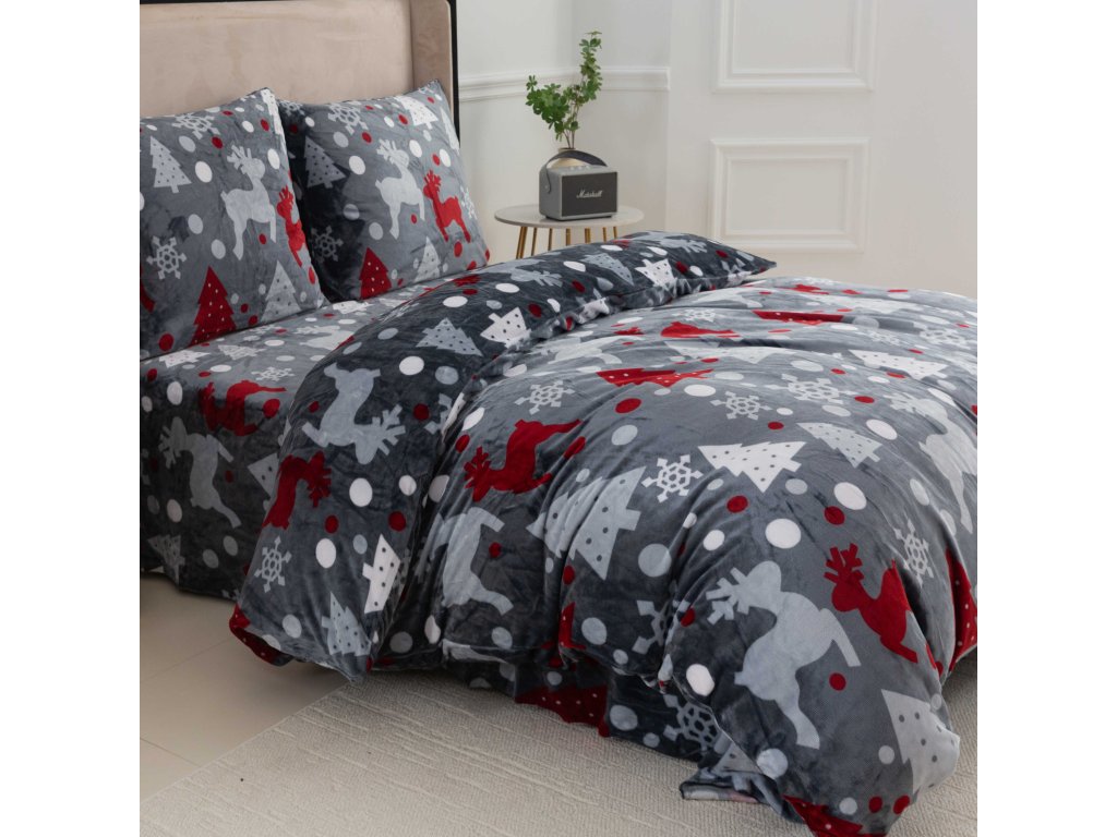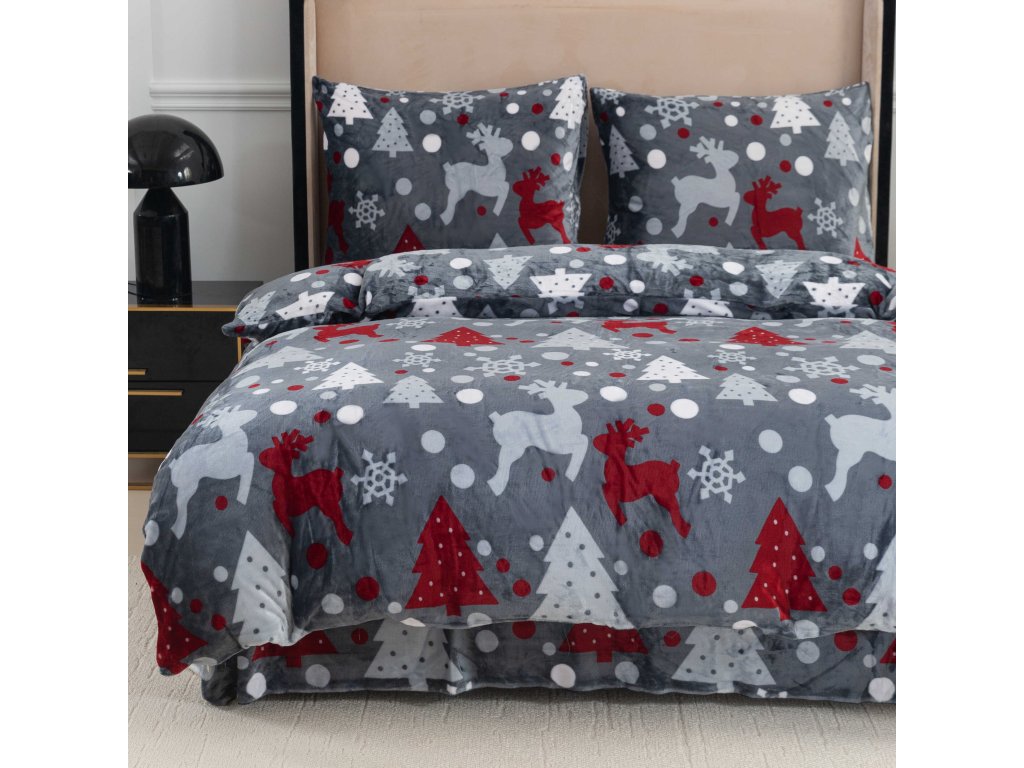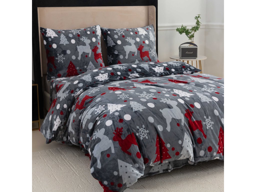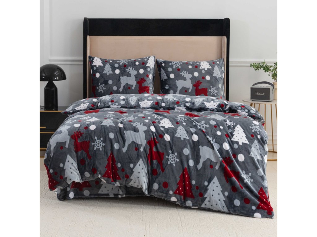 Mikroplyšové povlečení VÁNOČNÍ KOUZLO šedé