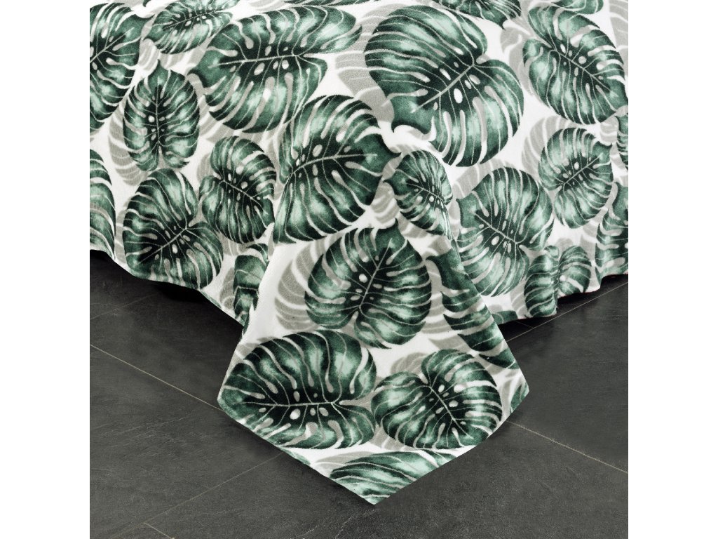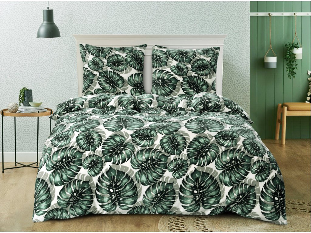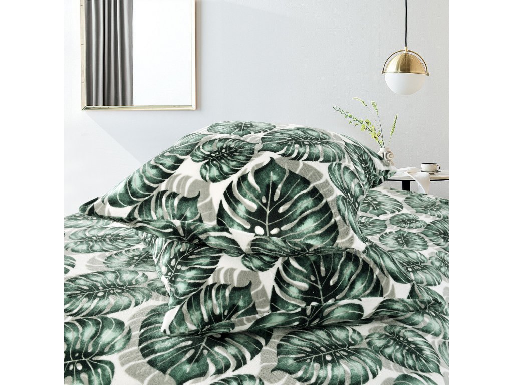 Mikroplyšové povlečení ZELENÝ LIST bílé