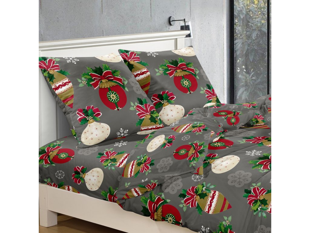 Povlečení z mikrovlákna BAREVNÉ VÁNOČNÍ OZDOBY šedé