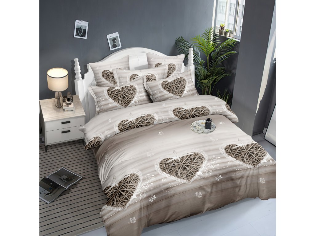Povlečení z mikrovlákna DŘEVĚNÉ SRDCE hnědé ROZMĚR 160 x 200 cm