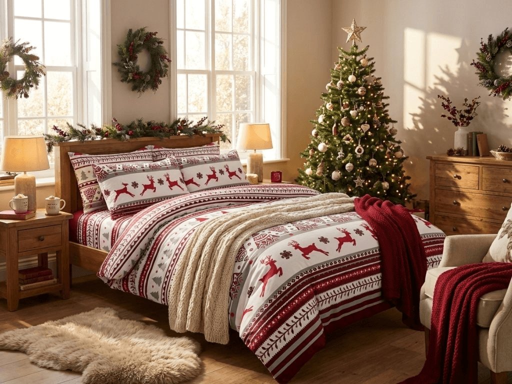 Povlečení z mikrovlákna JELEN A VLOČKA červené