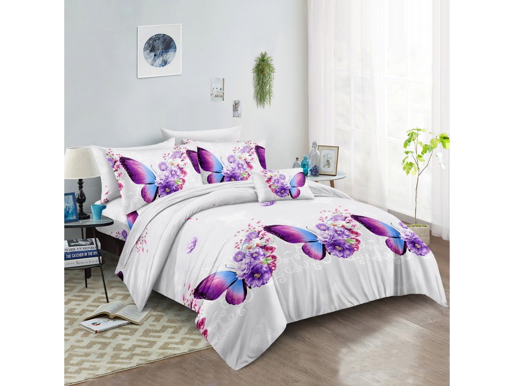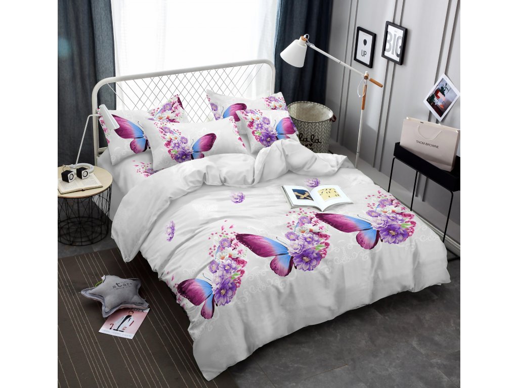 Povlečení z mikrovlákna MOTÝL A KVĚTY světle šedé