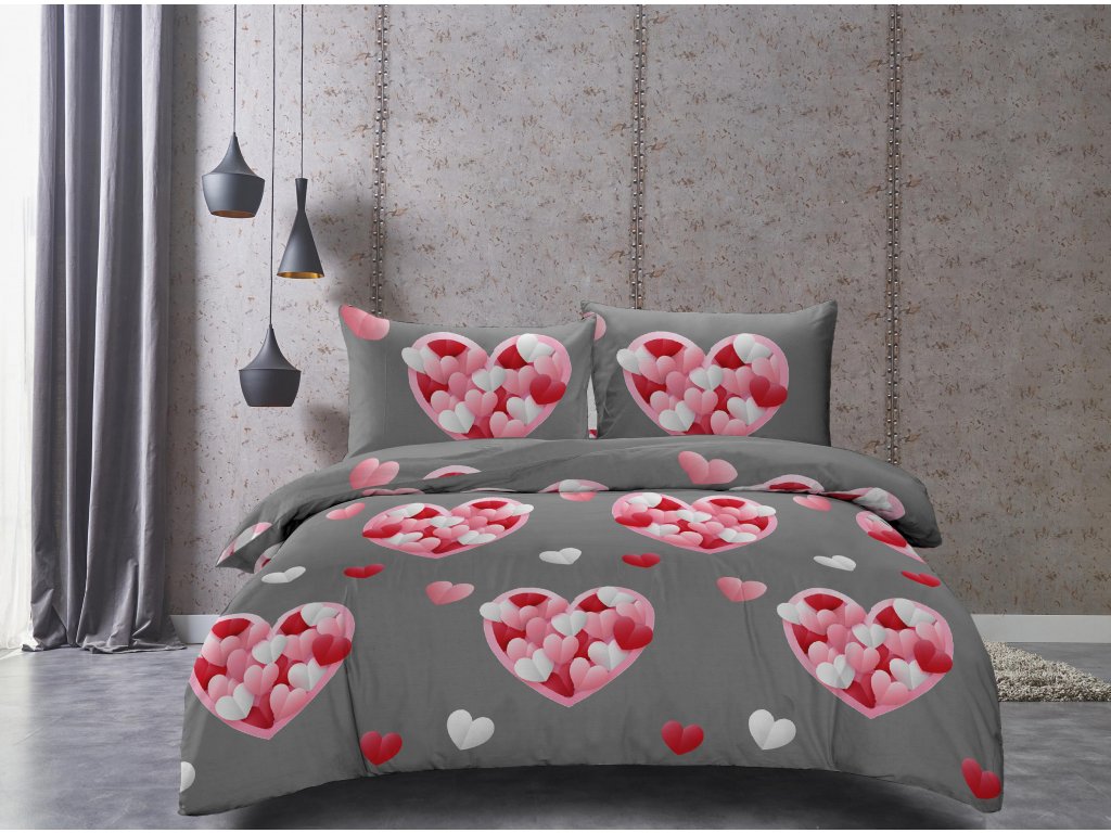 Povlečení z mikrovlákna PINK HEARTS šedé