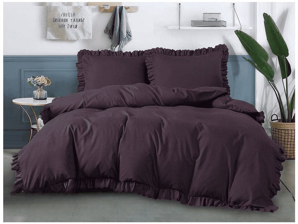 Povlečení z mikrovlákna s volánky VIRGINIA tmavě hnědé