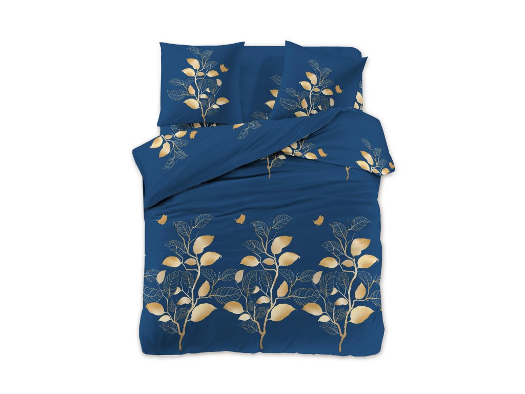 Povlečení z mikrovlákna ZLATÁ VĚTEV tmavě modré