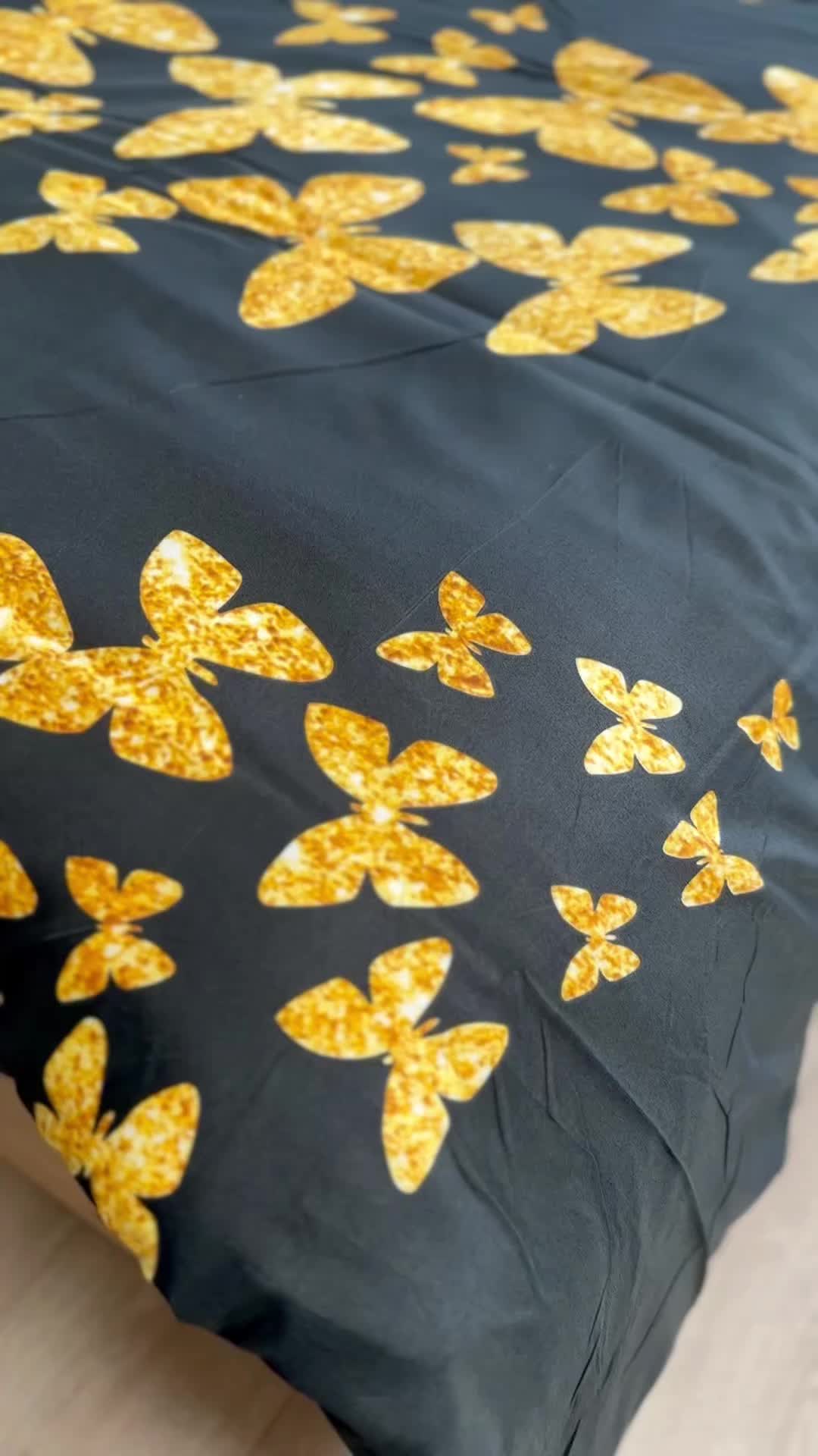 Povlečení z mikrovlákna ZLATÍ MOTÝLCI černé