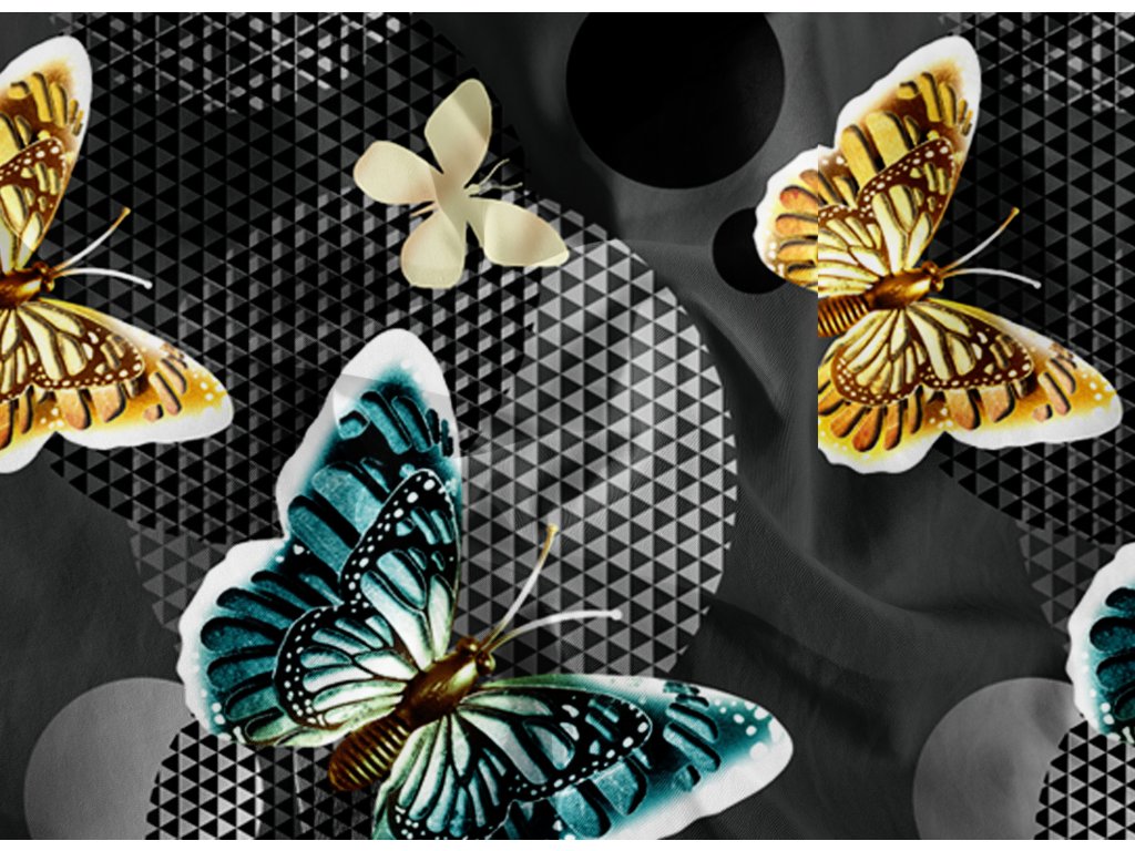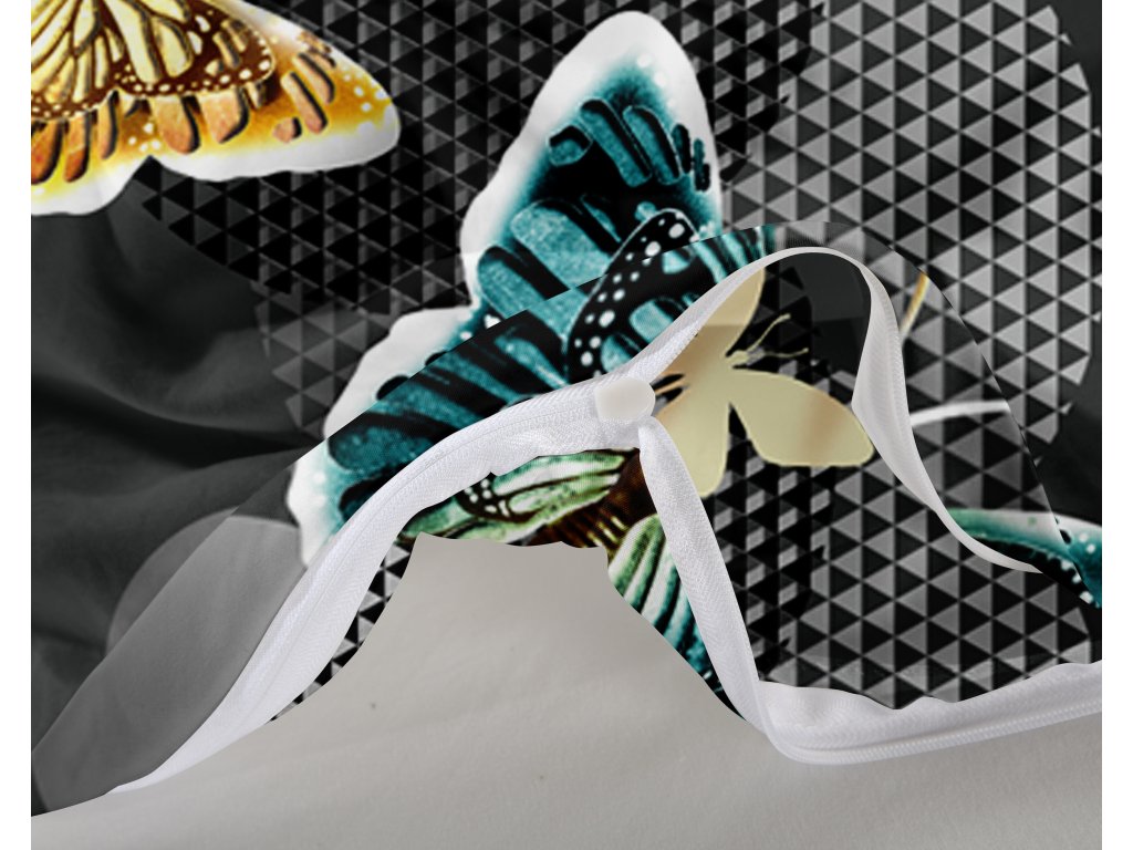 Povlečení z mikrovlákna ZLATÝ A TYRKYSOVÝ MOTÝL tmavě šedé