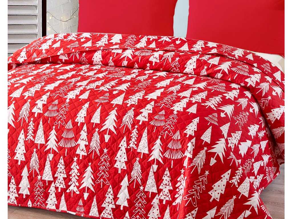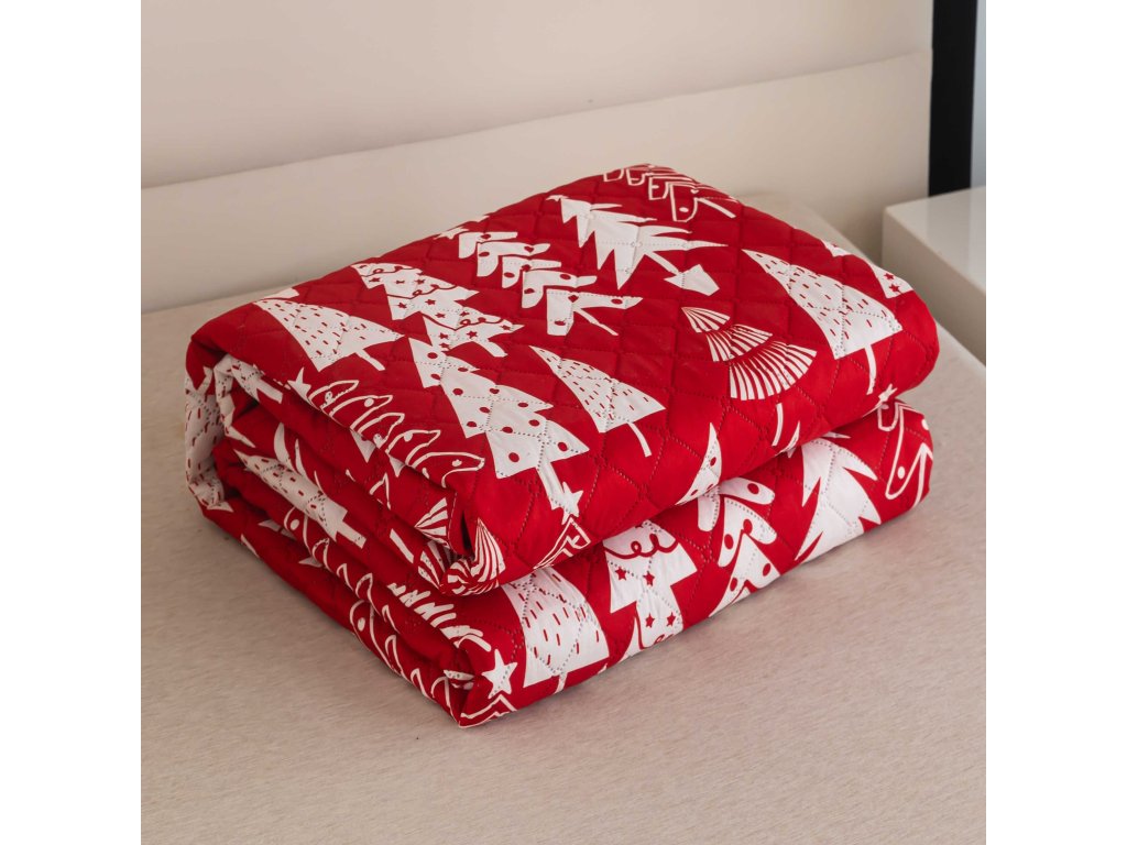 Červený přehoz na postel CHRISTMAS TREES