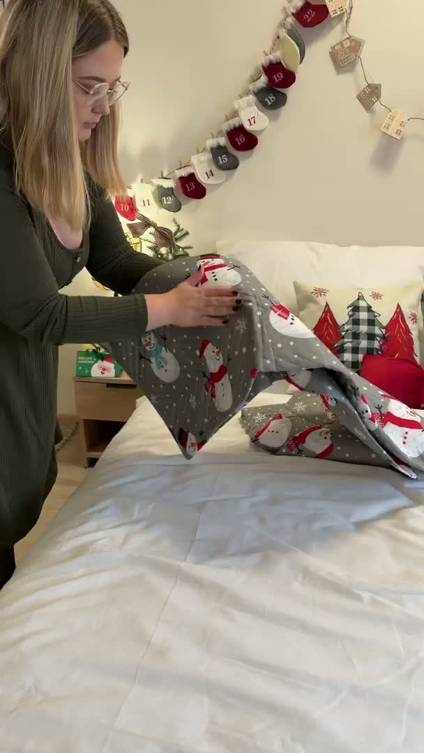 Přehoz na postel HAPPY SNOWMAN, šedý