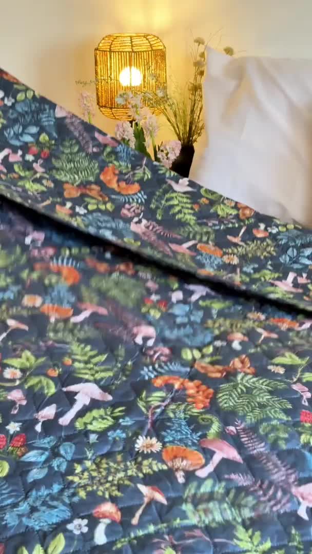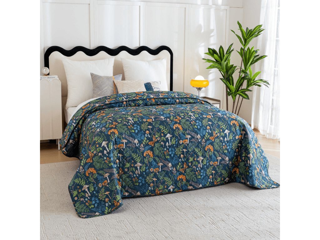 Přehoz na postel MUSHROOMS AND PLANTS barevný