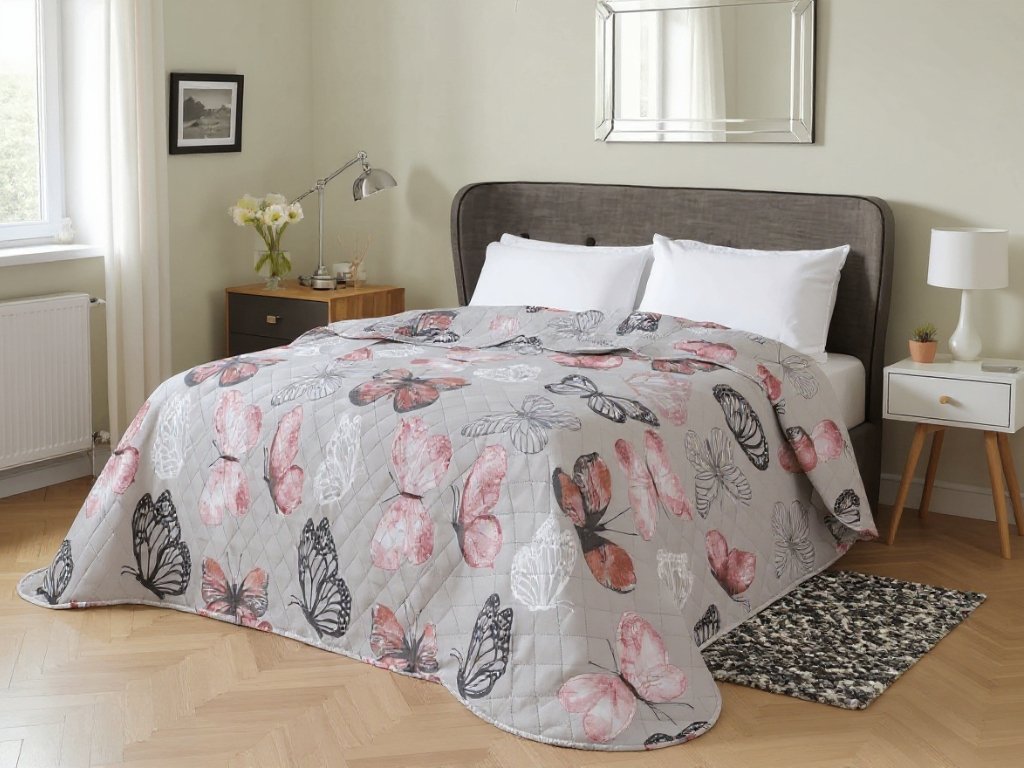 Přehoz na postel MY BUTTERFLY DIAMOND, světle šedý