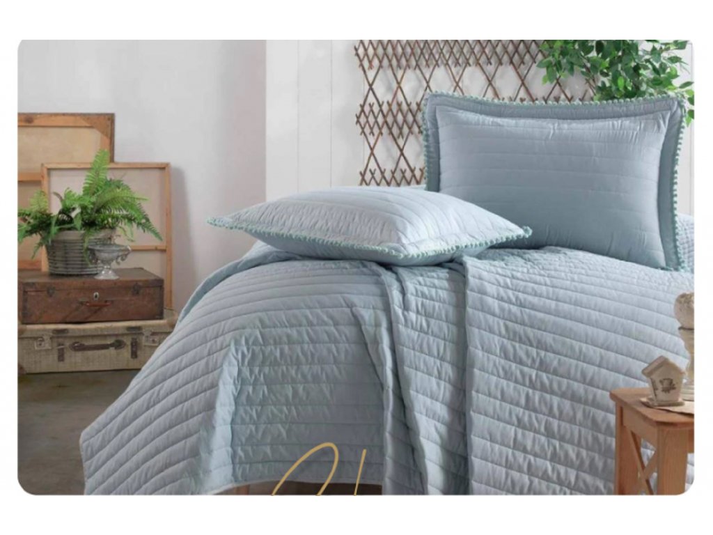 Prošívaný přehoz na postel s povlakem na polštář pro 2 osoby PEDRA mentolový