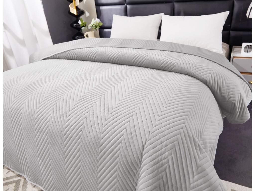 Světle šedý sametový přehoz na postel ARROW VELVET