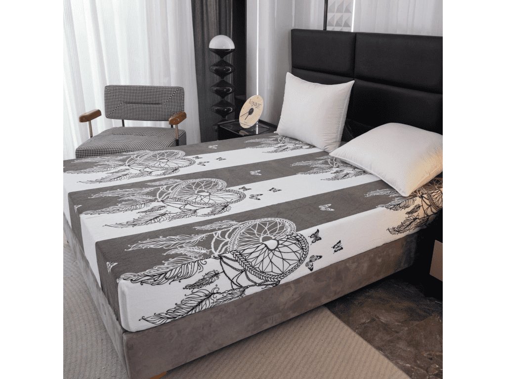 Prostěradlo mikroplyš TIRSO 160x200 cm šedo-bílé