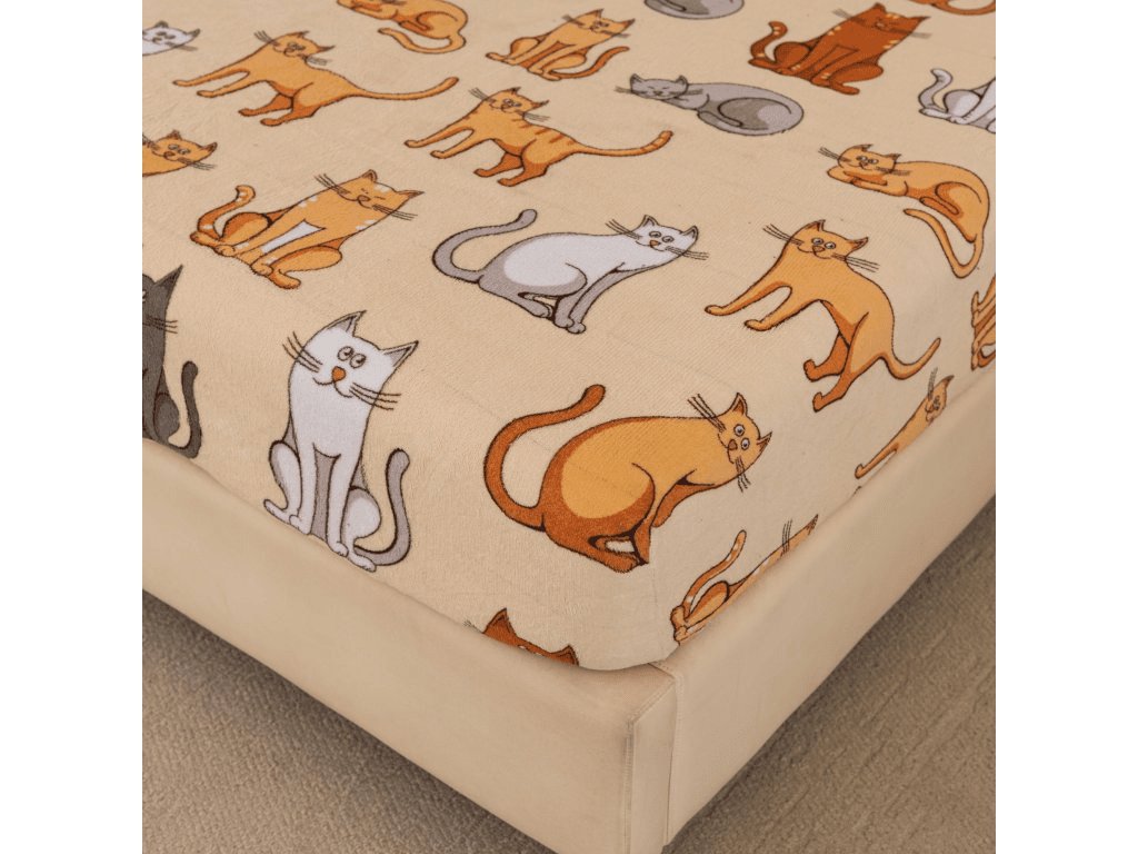 Prostěradlo mikroplyš COLORED CATS 200x200 cm krémové
