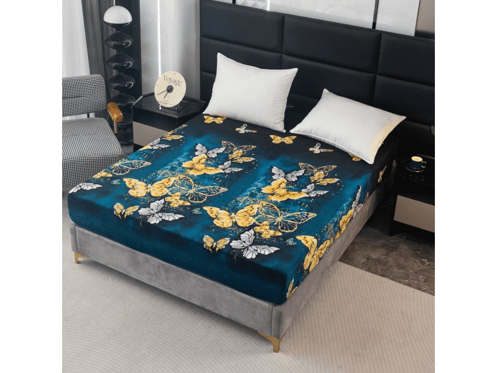 Prostěradlo mikroplyš ZLATÝ A BÍLÝ MOTÝL 90x200 cm tmavě zelené