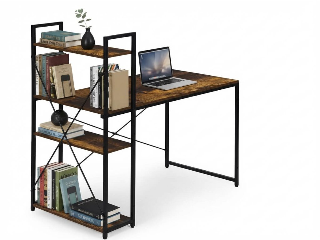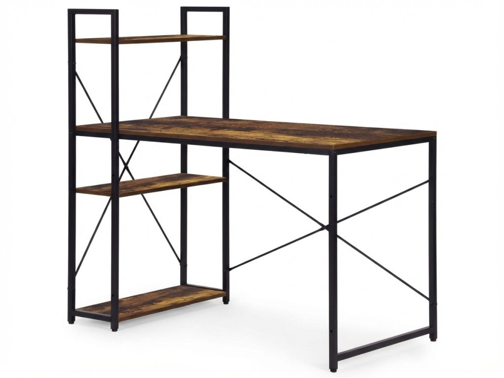 Psací stůl s regálem LOFTY 120x60 cm, černý / rustikálně hnědý