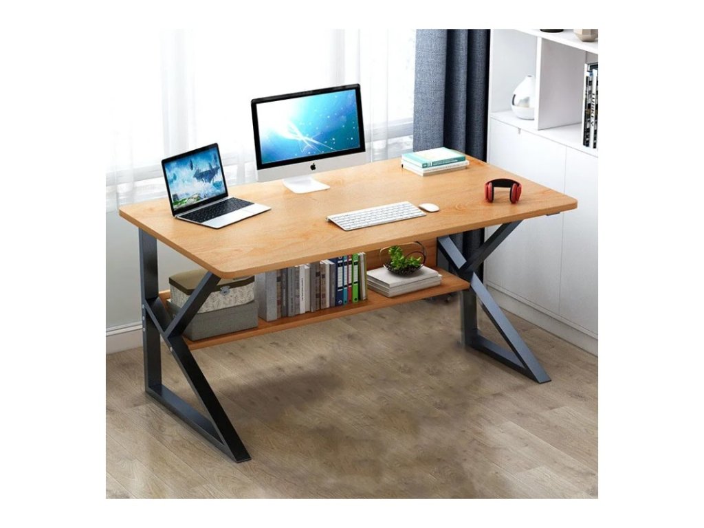 Psací stůl SHAPE s policí v dekoru dub a černými nohami 100x60 cm