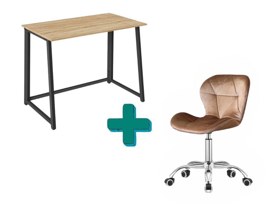 Set do pracovny ZARIMO stůl 80x40 cm dub sonoma + křeslo AVOLA VELVET světle hnědé