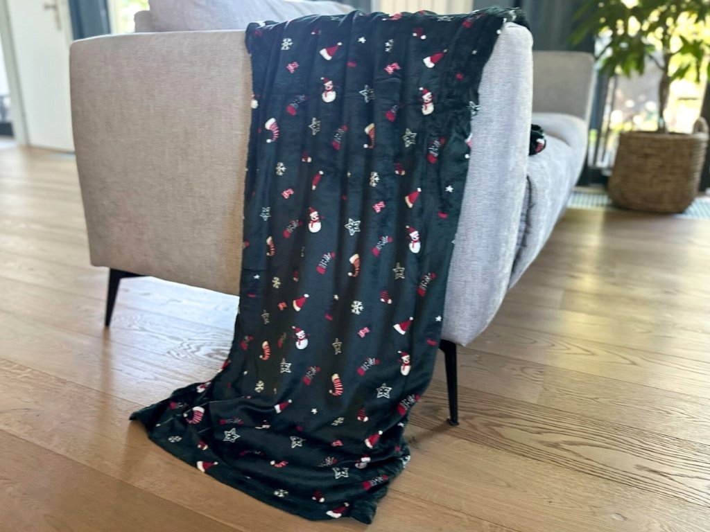 2x Tmavě zelená vánoční mikroplyšová deka VÁNOČNÍ ČEPICE 160x200 cm