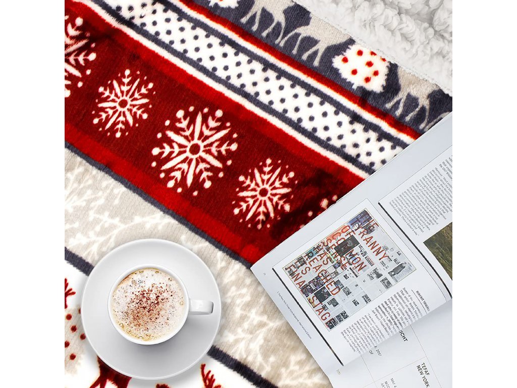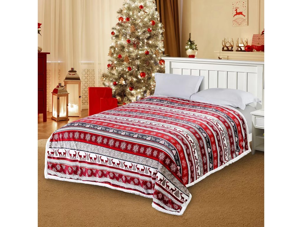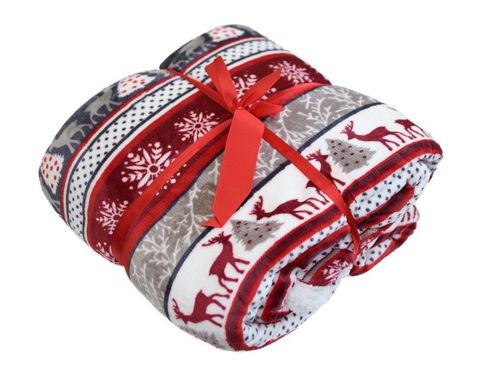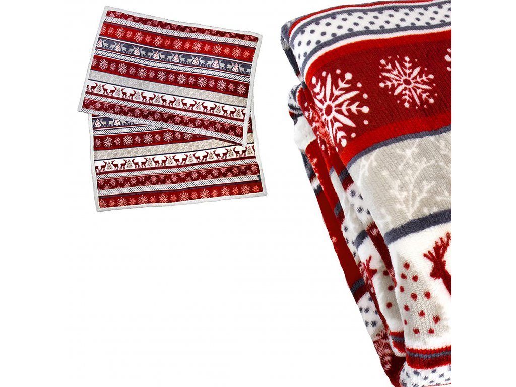 2x Vánoční červeno-bílá beránková deka z mikroplyše WINTER DELIGHT 160x200 cm