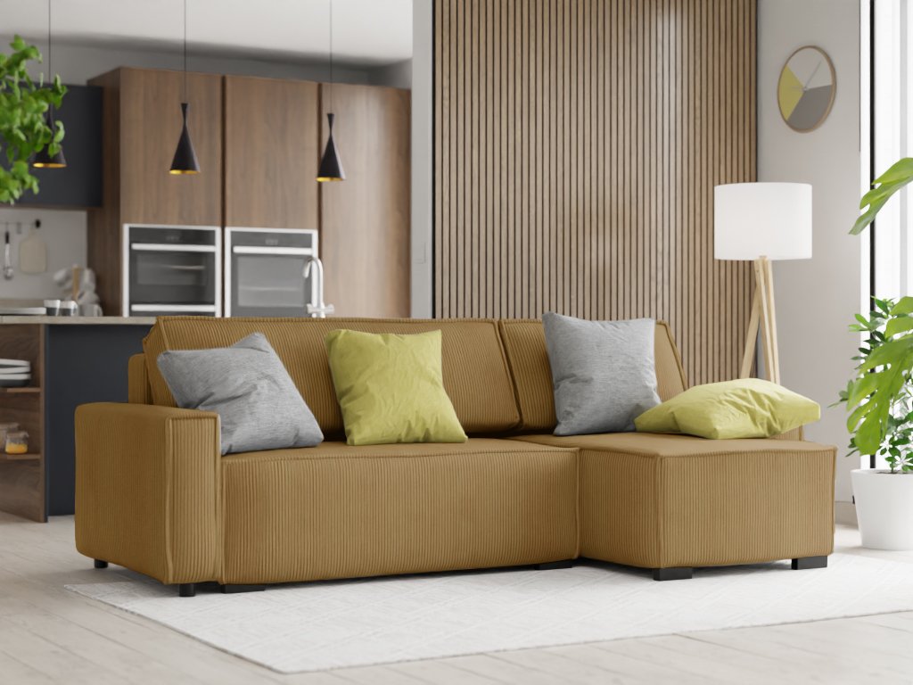Rozkládací rohová pohovka s taburetem SMART SET, hořčicová