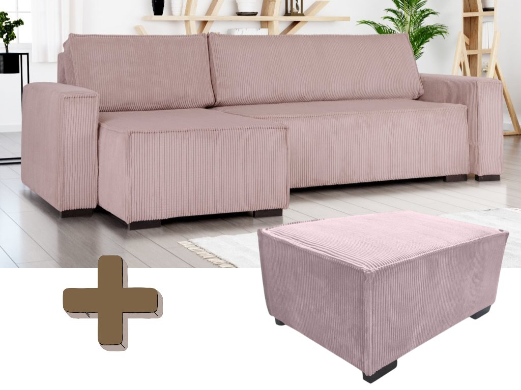 Rozkládací rohová pohovka s taburetem SMART SET, světle růžová LINCOLN 61