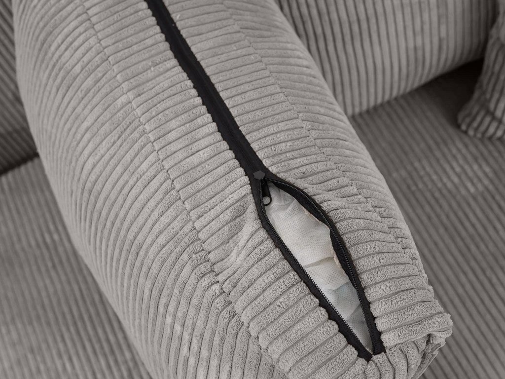 Souprava je potažena Poso tkaninou s jemnou žebrovanou texturou, velmi příjemnou na dotyk, s vysokou gramáží 380g/m2 a odolností vůči oděru. Sedáky soupravy tvoří kvalitní a dlouhodobě tvarově stálá polyuretanová pěna doplněná o výztuhu z vlnitých pružin. Konstrukce sedačky je vyrobena z masivního borovicového a bukového dřeva s doplňkovým materiálem z dřevotřísky, překližky a sololitu.