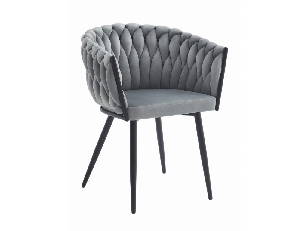 Světle šedé jídelní křeslo ORION VELVET s černými nohami