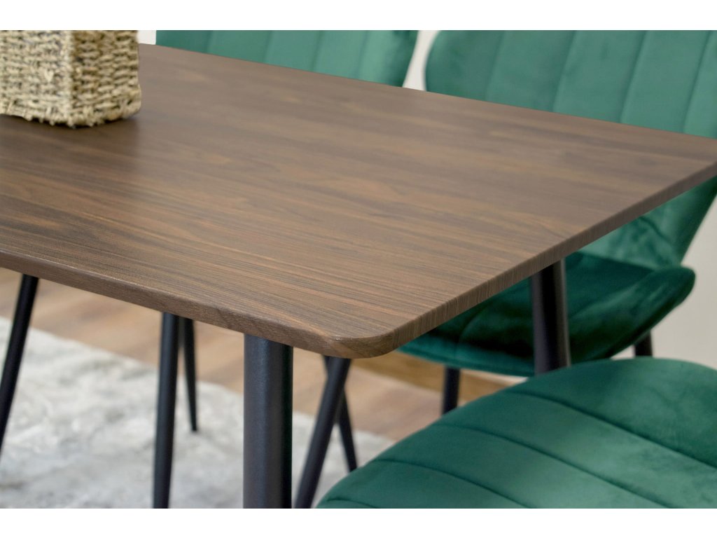 Světlé místnosti, velká okna a střídmé doplňky. Interiéry ve skandinávském stylu mají nezaměnitelný design. Nechte vyniknout přírodní materiály, jednoduché tvary a čisté linie v prostoru. Nudnosti nebo chladnosti se obávat nemusíte. Jeden výrazný tón podtrhne celkovou atmosféru a dodá mu požadovanou dávku energie. Funkční doplňky a základní paleta barev bezesporu patří do skandinávské jídelny i kuchyně. Jídelní stůl Werona 120 x 80 cm s deskou v dekoru jasanu a černými nohami provzdušní prostor. Dokonalý pár bude tvořit s výraznějšími čalouněnými židlemi a prostíráním ve stejném odstínu.
