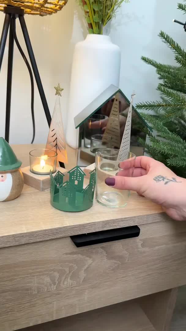 Zelený kulatý svícen s motivem domečků LUMINAIRE