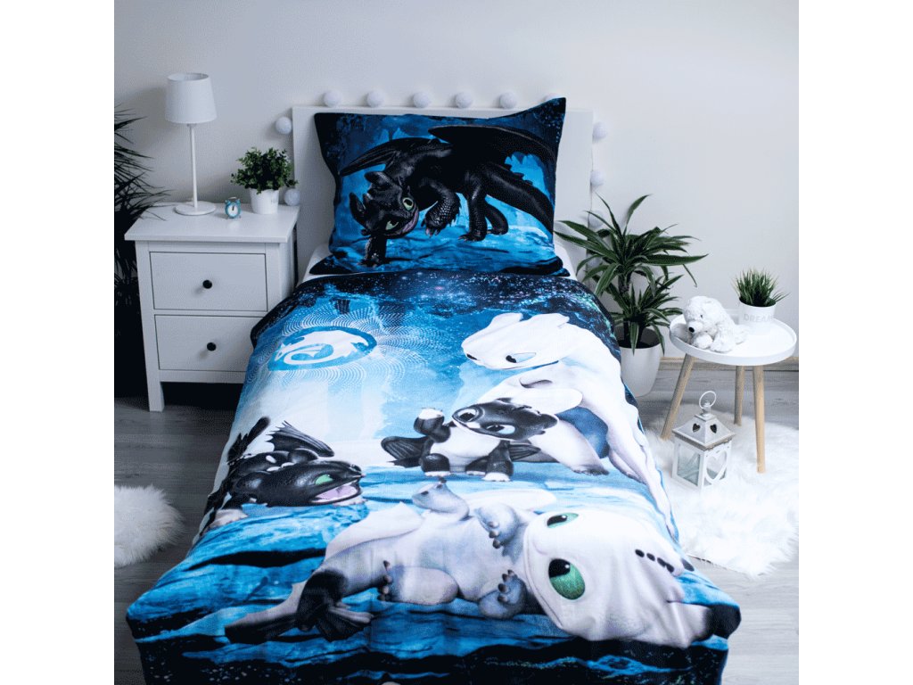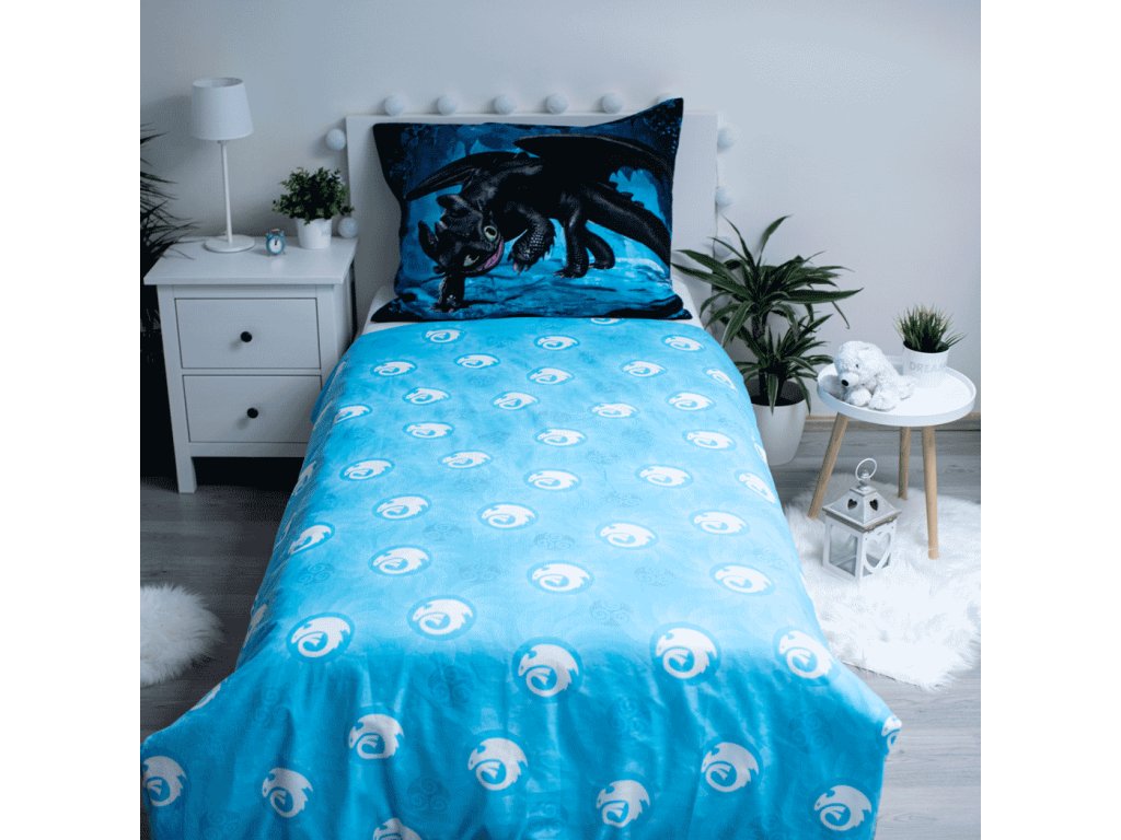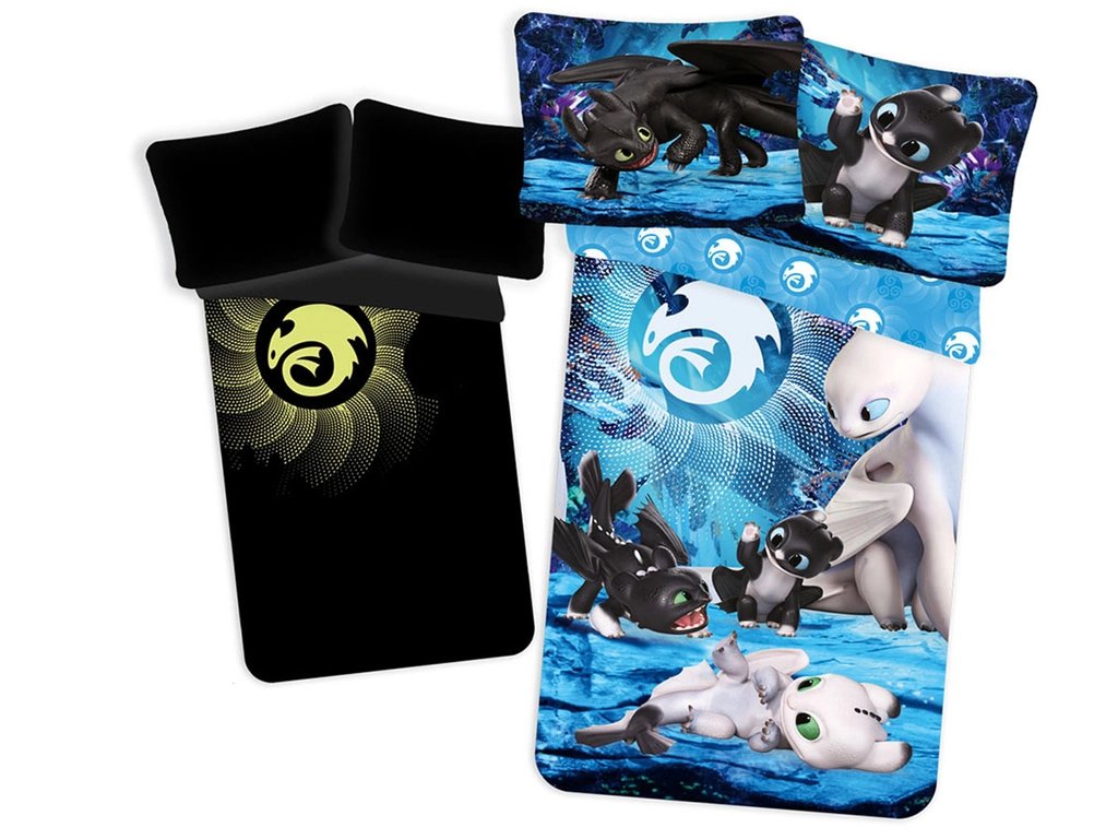 Svítící bavlněné povlečení JAK VYCVIČIT DRAKA modré