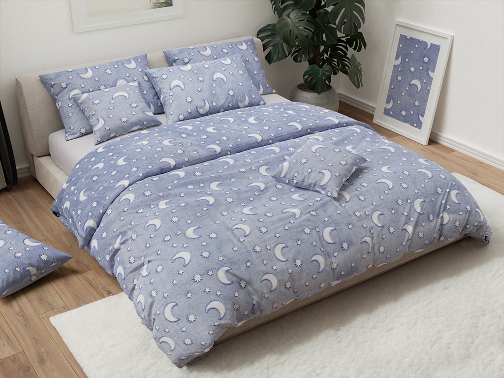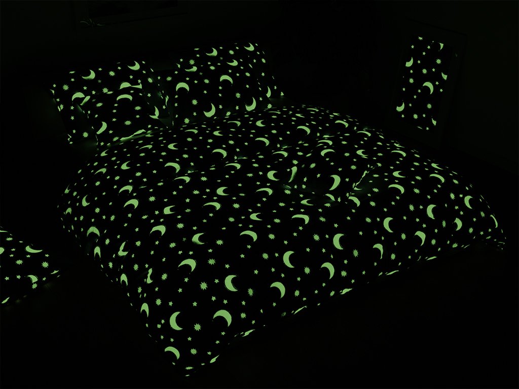 Svítící Mikroplyšové povlečení HVĚZDNÉ NEBE modrošedé