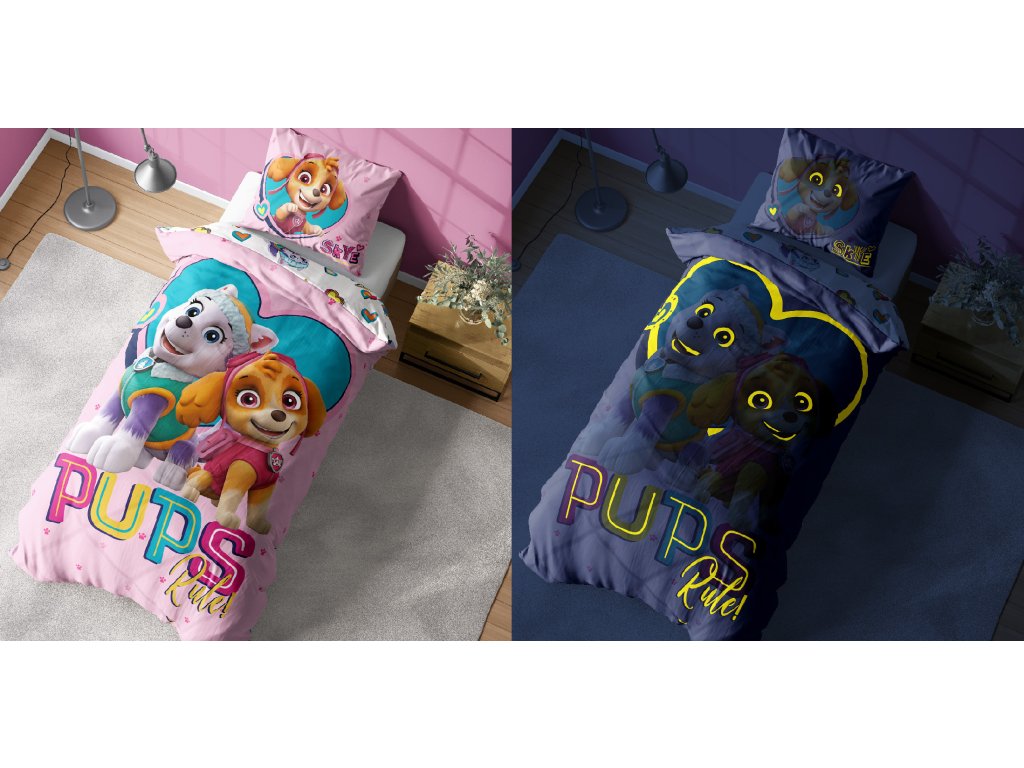 Svítící povlečení PAW PATROL Pups rule růžové