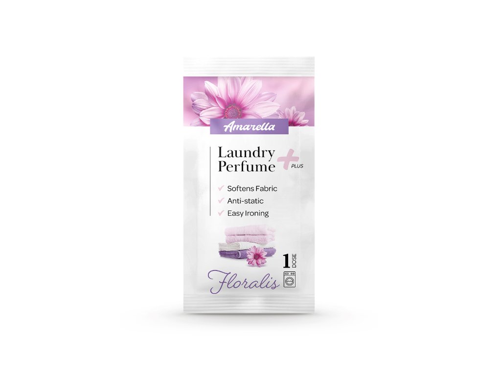 Parfémy na praní AMARELLA v praktickém jednorázovém 10ml sáčku jsou ideálním řešením pro každodenní péči o prádlo i pro použití na cestách či dovolené. Spojují intenzivní vůni s praktickými benefity – dodávají textiliím dlouhotrvající svěžest, jemnost a pohodlí při nošení. Jedna dávka provoní vlákna tak, že oblečení, ručníky i ložní prádlo zůstávají svěží po usušení i během nošení. Navíc působí antistaticky, usnadňují žehlení a pomáhají omezit pomačkání. Jednorázové balení je připraveno k okamžitému použití a poskytuje rychlý způsob, jak mít prádlo krásně voňavé a upravené kdykoli a kdekoli.