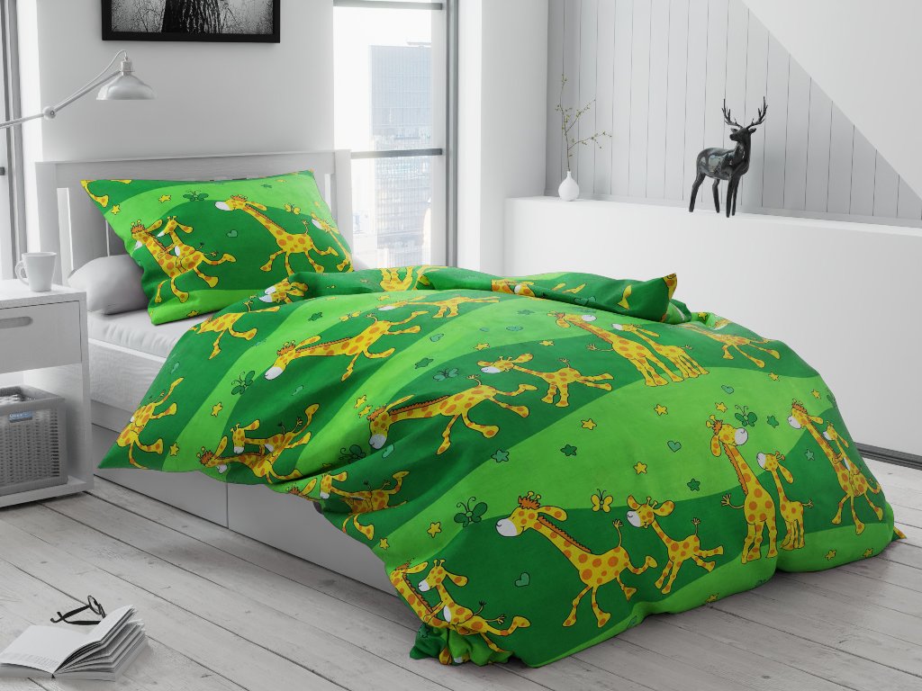Pestré, nápadité a moderní vzory. To přesně potřebuje každý dětský pokojíček. Jak se asi vašemu dítku bude usínat v novém povlečení s motivem dinosaura, beránka nebo třeba žirafy?! Podpořte dětskou bohatou fantazii nejen ve snu. Veselé a jasné barvy oživí pokoj, dodají energii a zpříjemní celkový dojem dětského světa.