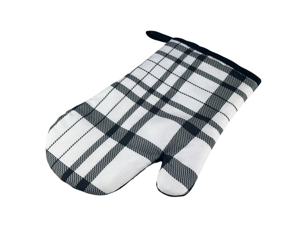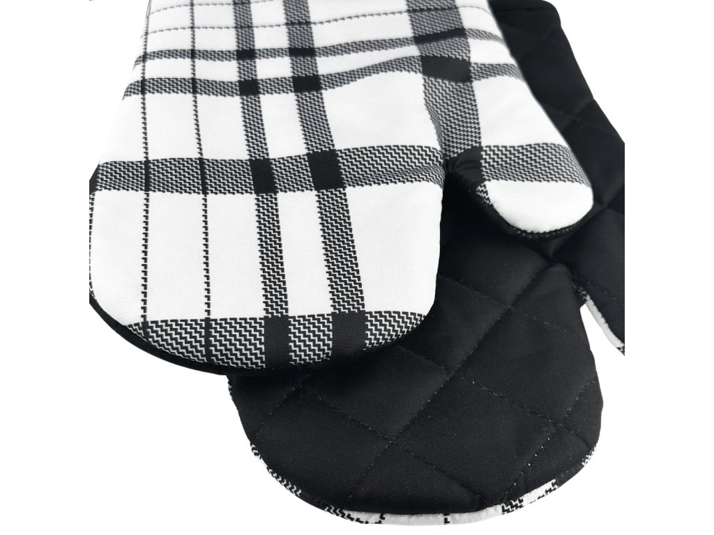 Sada 2 kuchyňských chňapek s magnetem CHECKS, bílo-černá