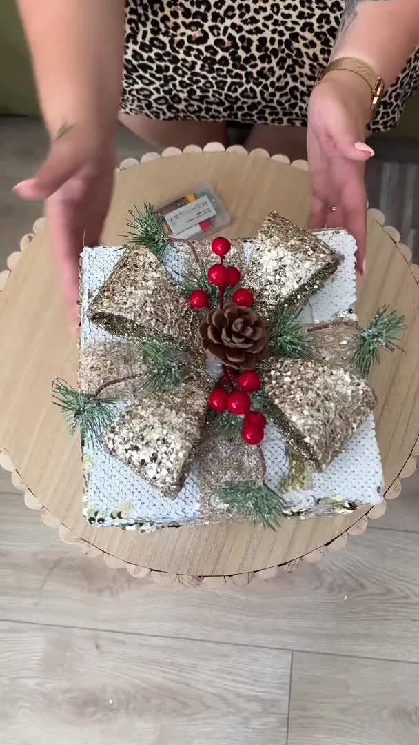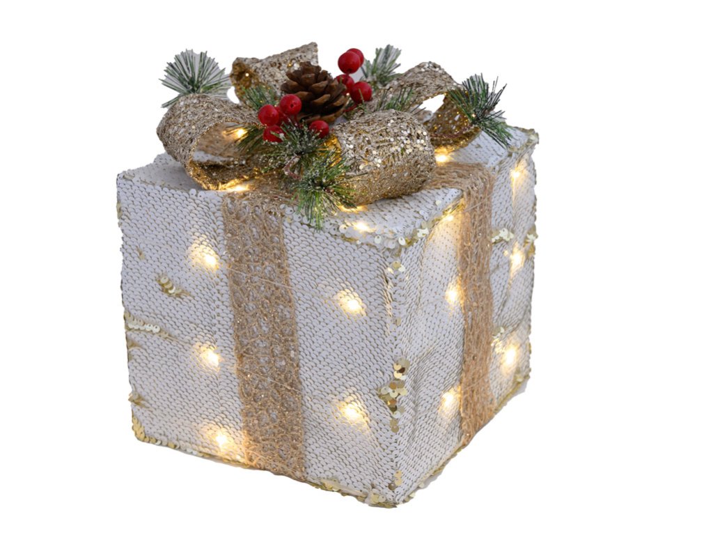 LED vánoční dekorace zlatý DÁREČEK, výška 24cm