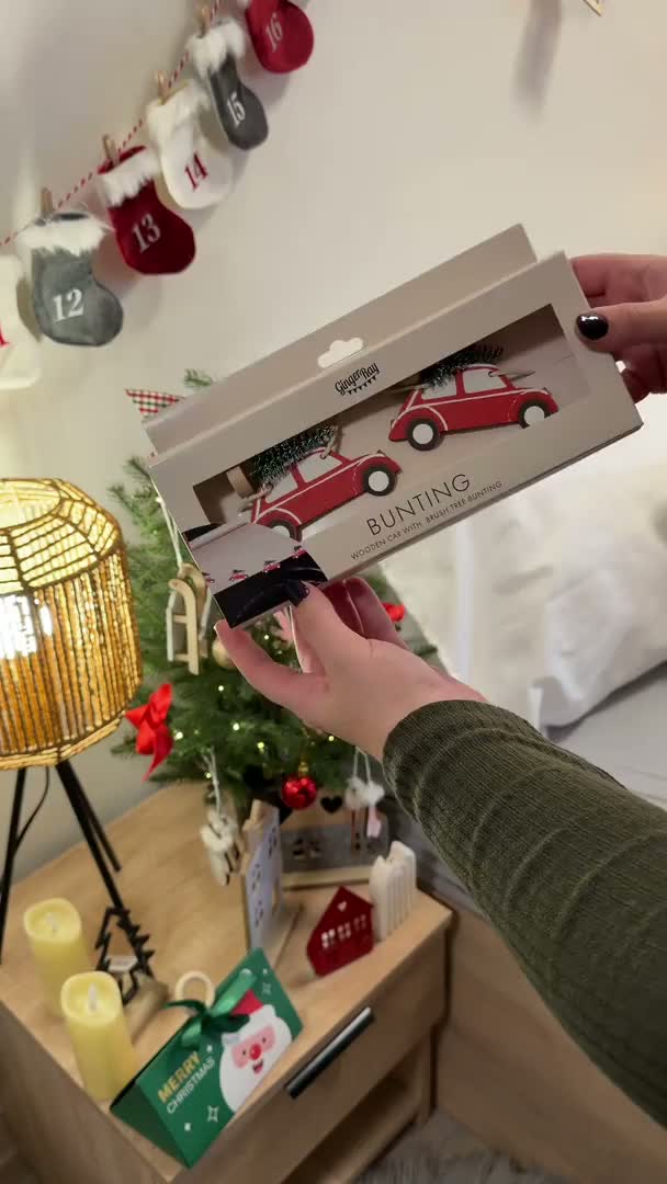 - Na girlandě je zavěšeno 8 ks dřevěných autíček